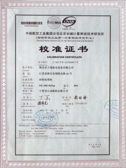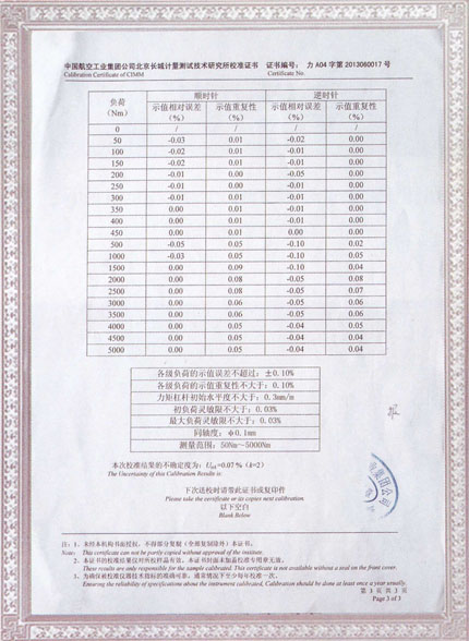 | NE-500標準扭矩機第三方校準證書 |