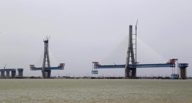 | 5月23日滬通鐵路大橋27,28號橋墩首次合攏 |
